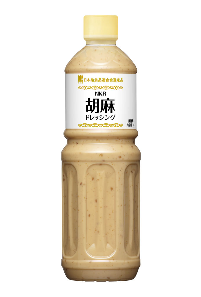 理研 NKR胡麻ドレッシング(32903) 商品情報 商品名 理研 NKR胡麻ドレッシング 商品コード 32903 規格 1L/本 保管区分 常温 賞味期限 150日間 原材料名 食用食物油脂、糖類(果糖ぶどう糖液糖、砂糖、ぶどう糖) 他 アレルギー情報 小麦・大豆・ごま・卵 甘さとコクを際立たせ、酸味がまろやかな胡麻ドレッシングです。 調理法 栄養成分 エネルギー 395kcal たんぱく質 1.3g 脂質 33.2g 炭水化物 21.6g 食塩相当量 3.74g
